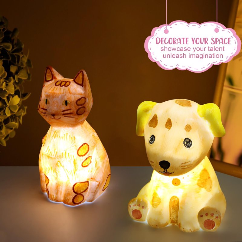 - UNLEASH & SPARK YOUR CREATIVITY: With this arts & crafts supplies kit, kids can unleash their imagination, creating truly unique and stunning designs on the cat and dog lamp. This DIY kit can help kids develop fine motor skills, stimulate creativity and imagination, and build self-confidence.