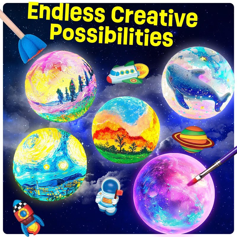 Paint Your Own Moon Lamp Kit, Cool Gifts DIY 3D Space Moon Night Light, Art Supplies Arts & Crafts Kit, Arts and Crafts for Kids Ages 8-12, Toys Girls Boy Birthday Gift Ages 3 4 5 6 7 8 9 10 11 12+