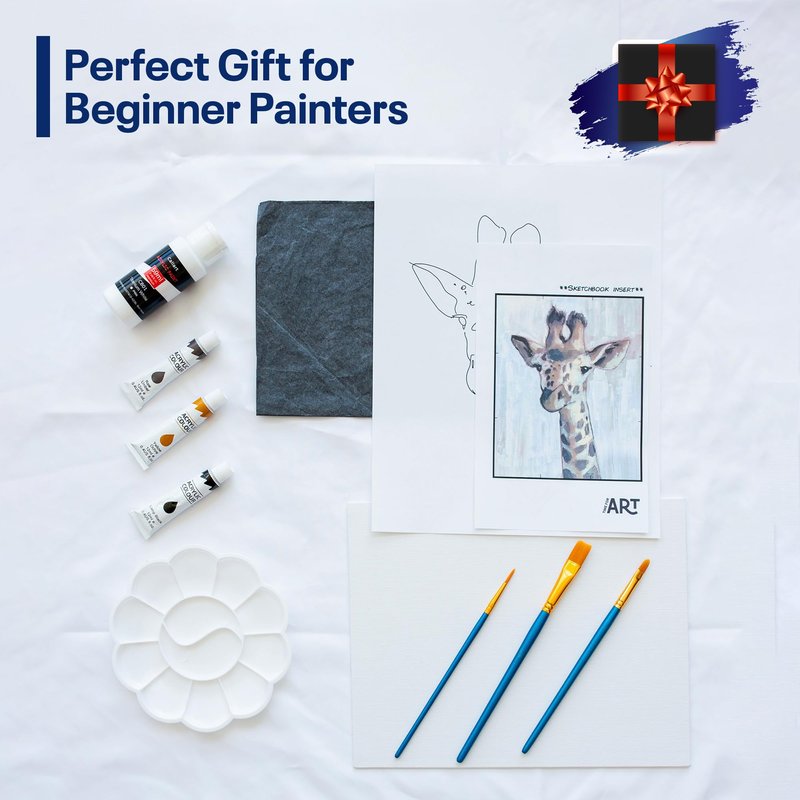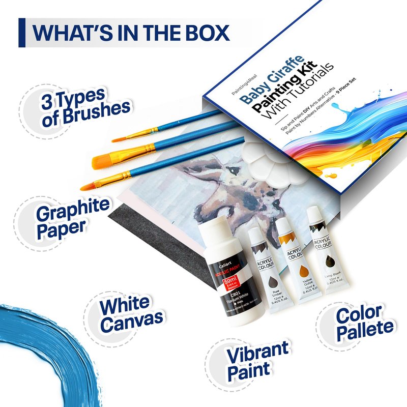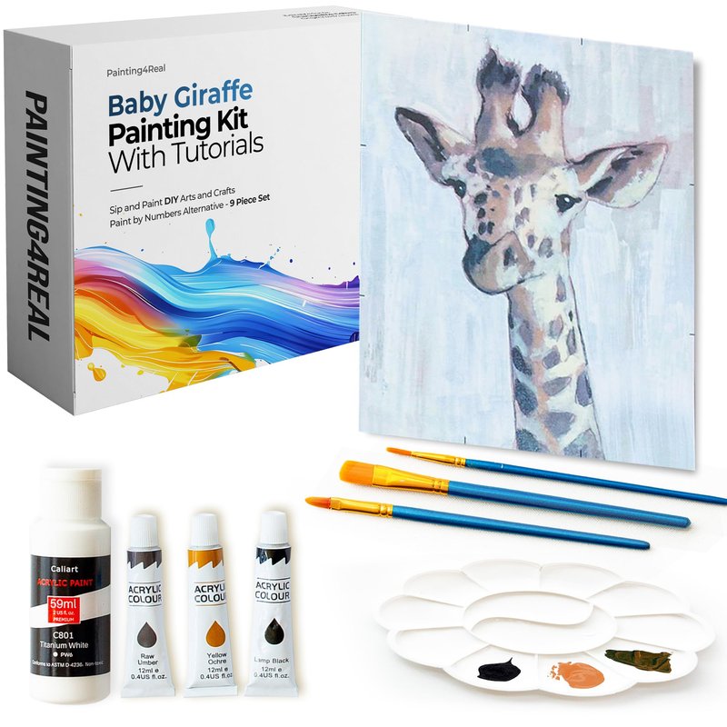 Painting4Real DIY Painting Class Kit for Adults: Learn to Paint This Baby Giraffe with Video Tutorials – How to Paint with Acrylics – Painting & Art Supplies – 9 Piece Acrylic Paint Set