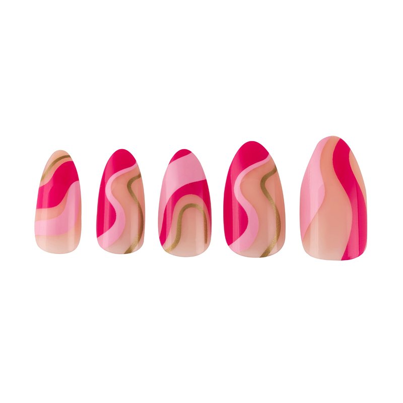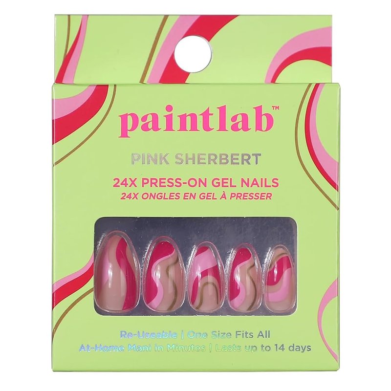 PaintLab Press On Nails - PInk Sherbert | Medium Almond Swirl Design Nails | 14 Sizes - 24 Nail Kit with Glue and File | Reusable