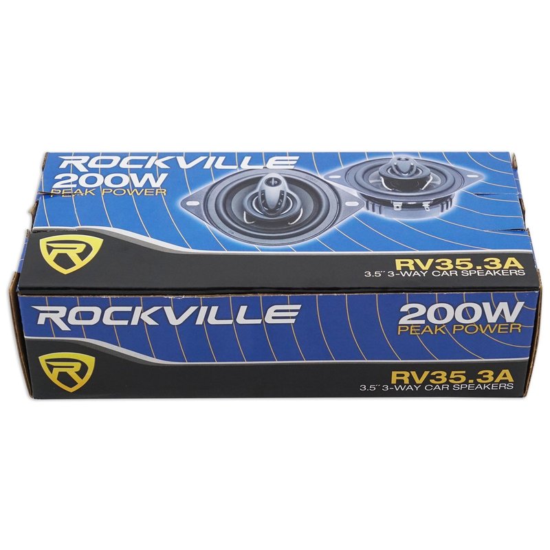 - Pair Rockville RV35.3A 3.5" 3-way car speakers. Peak Power Rating: 200 Watts per Pair / 100 Watts Each. CEA Compliant RMS Rating: 60 Watts per Pair / 30 Watts Each. Polypropylene woofer gives amazing bass and mids. Flex Motion Butyl Rubber Surround.