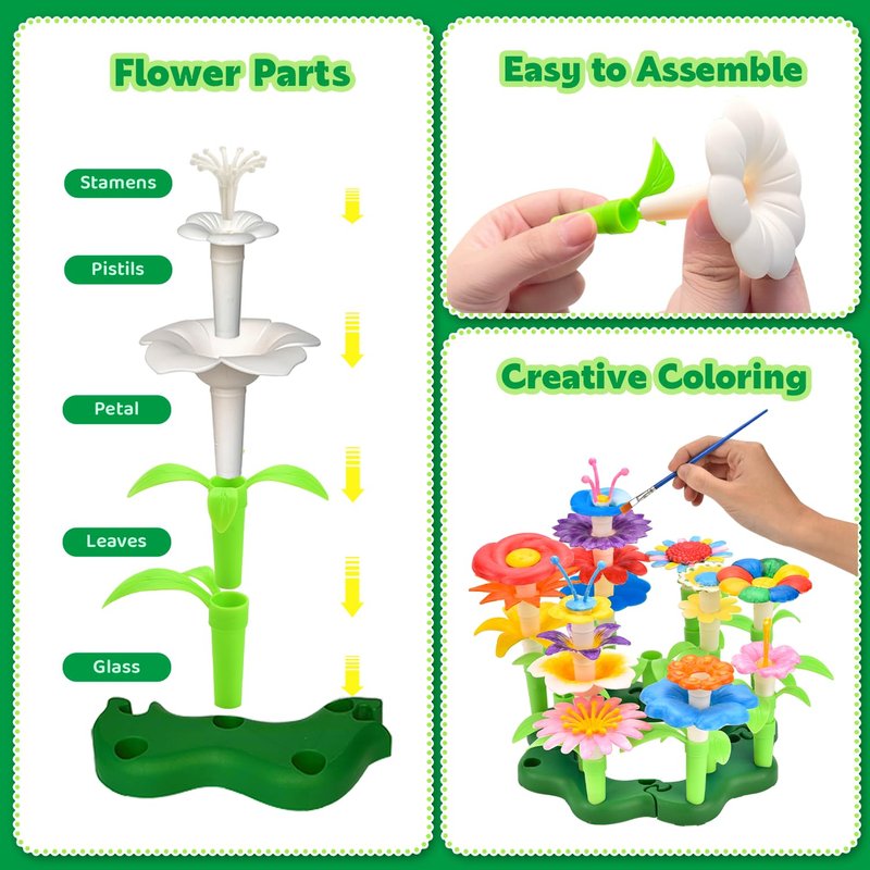 - Upgraded Colorable Flower Building Toy Set with Storage Box