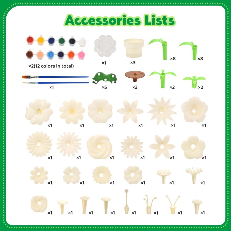 Pairez Toys Flowers Garden Building & Painting Kit, DIY Bouquet Building Set, Build & Paint Plants Toys, Arts & Crafts Kits for Boys & Girls, Students Age 6 7 8 9 10