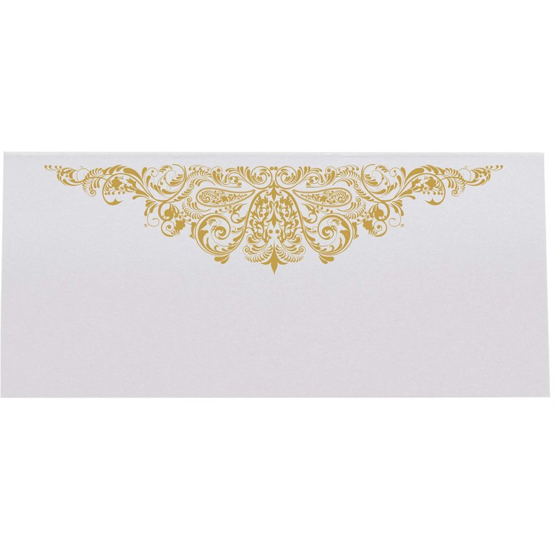 These easy-to-print place cards feature a unique paisley design at the top of each card in your choice of color and are a perfect addition to any wedding or special event. The place cards are delivered on standard 8.5 inch x 11 inch sheets, and come perforated and scored. The paper is a high-quality, 80# White card stock that is both laser and inkjet ready. They are a perfect accompaniment to your wedding reception, engagement party, rehearsal dinner, birthday party, baby shower, or bar/bat mitzvah celebration. Choose from black, burgundy, chocolate brown, eggplant purple, fuschia, gold, hunter green, ivory, lavender, baby blue, navy, orange, pink, purple, royal blue, ruby red, sage green, or silver., Sheet Size: 8.5 inches x 11 inches. Place Card Size: 4.25 inches wide x 1.83 inches tall. Six cards per sheet. Includes a downloadable Microsoft Word template. Gold. 10 8.5x11 Sheets. (60 total cards)
