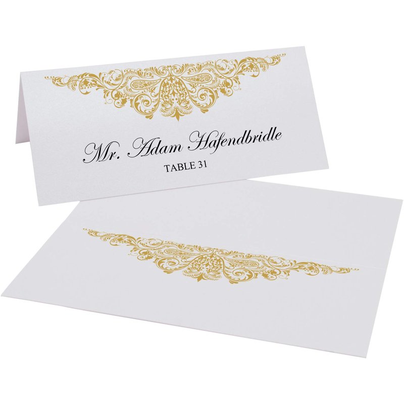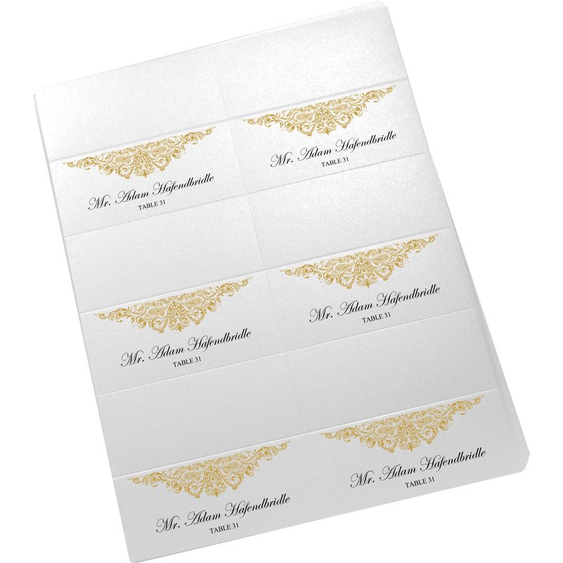 - Includes (10) 8.5x11 Sheets. (60) Individual Place Cards. Gold
