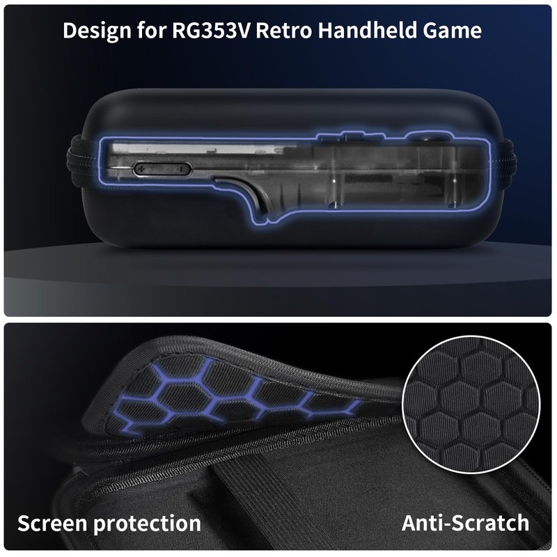 - Protective case for RG353VS game console emulator: The middle layer of the storage organizer is anti-friction, can well protect the android game console screen from any scratch. Storage box is made of high-quality materials with good good shockproof and anti-drop can provide ample protection for RG353V cloud gaming console, but also waterproof, dust-proof, protect from damage to extend the service life