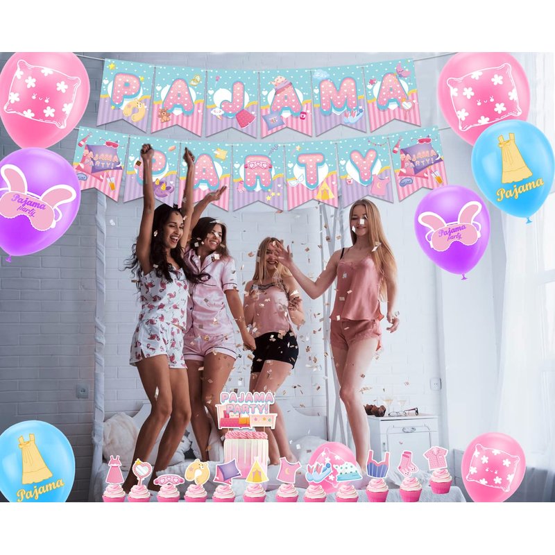 Pajama Theme Party Pajama Slumber Party Decorations Sleepover Party Decorations Includes Pajama Theme Banner Cake Topper Cupcake Toppers Balloons for Girls Spa Party Supplies