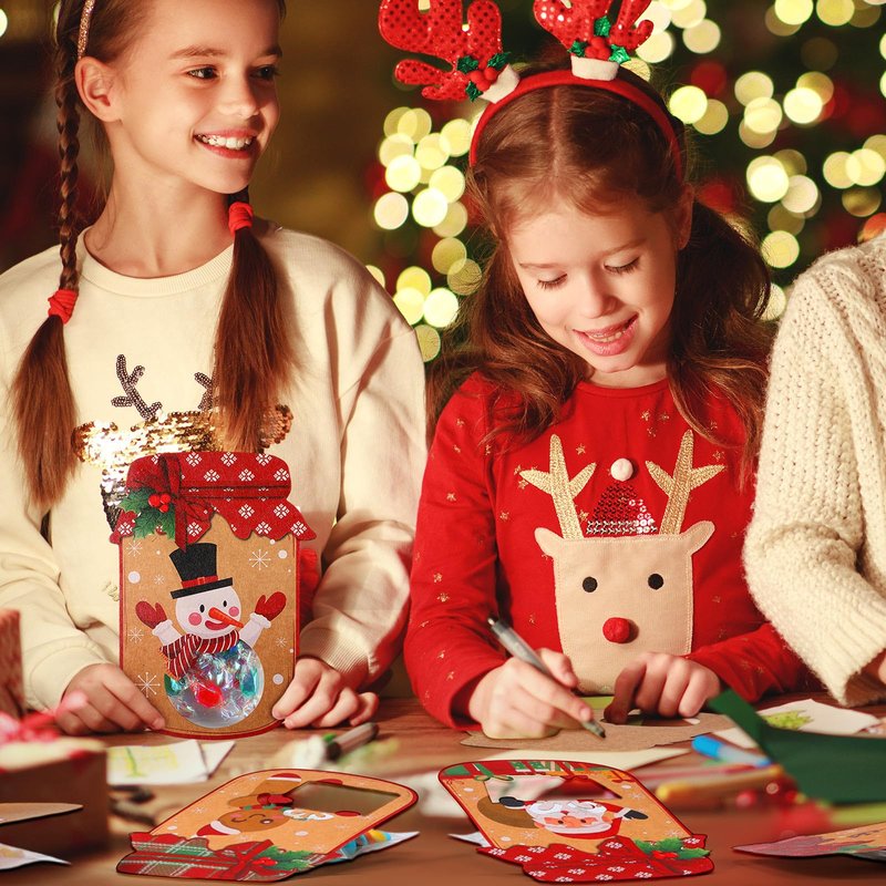 - Christmas Theme Design: Our christmas treat craft kit are design in 8 styles, such as snowman, santa claus, gingerbread man and elk, writeable text on the top of the back of the card. You can package your own candy or other small gifts and stick it on the back of the cards