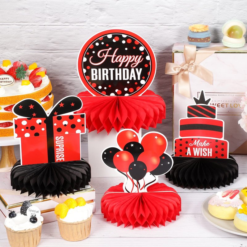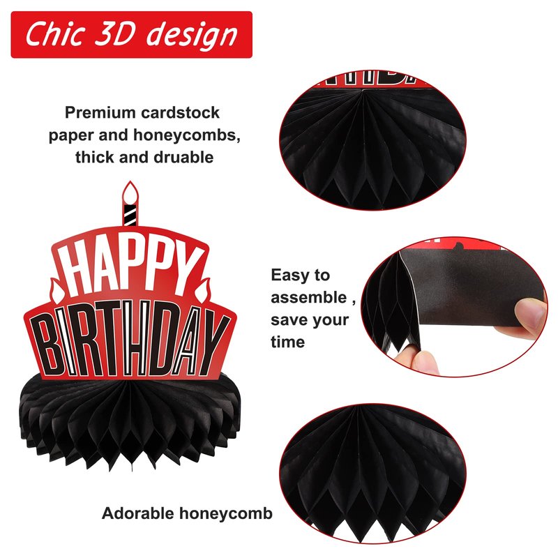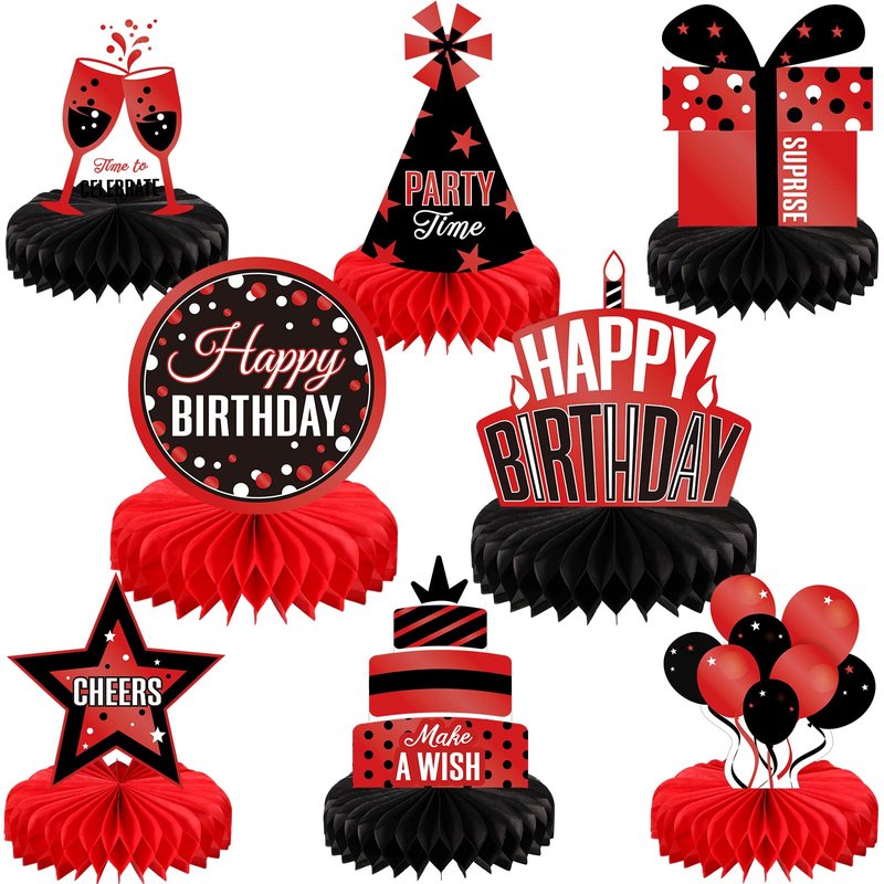 - Package Includes: you will receive 8 red black birthday party honeycomb centerpieces in 8 different designs, sufficient quantity and various styles to meet your birthday party decoration needs and make your birthday themed party a hit