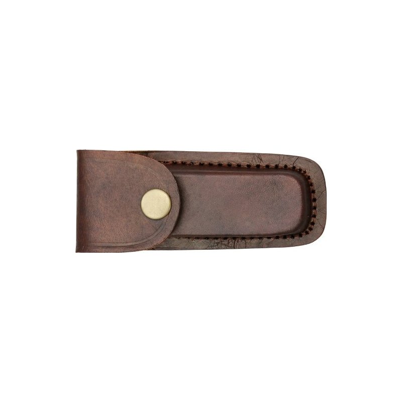 SHEATH ONLY! Knife not included! Brown Leather Belt Sheath. Made to fit folding knife up to closed. MADE IN PAKISTAN.