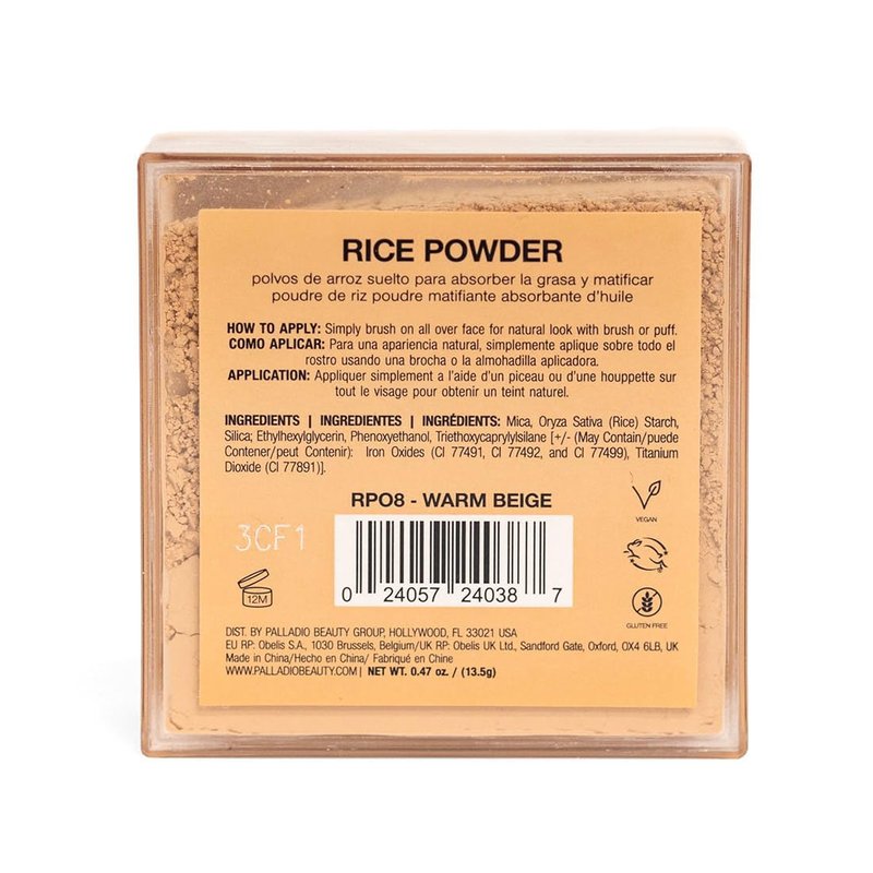 - RICE POWDER ABSORBS OIL & SETS MAKEUP: Palladio's loose rice powder helps you avoid shine by absorbing excess oil and leaving your face looking silky smooth. Rice powder also helps set your makeup, so you stay looking fresh and finished all day long.