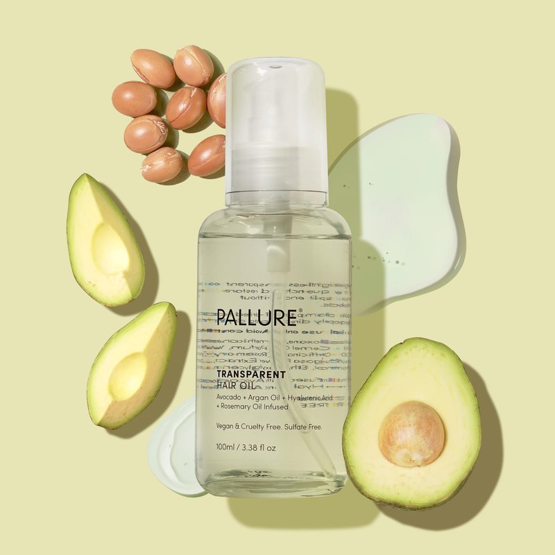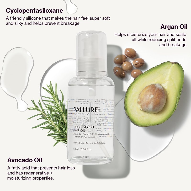 Pallure Transparent Hair Oil Treatment To Support Thicker, Voluminous, Fuller Looking Hair, Infused with Hyaluronic Acid, Biotin, Avocado and Rosemary Oil (3.4 Fl Oz)