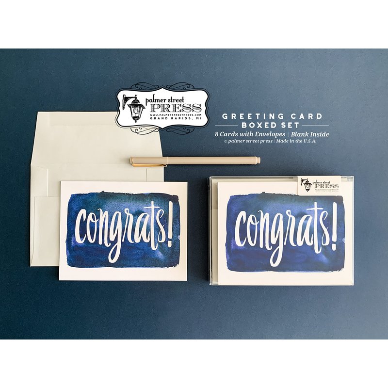 Palmer Street Press Congrats! Inky Navy Congratulations Cards - Set of 8 Congratulations Greeting Cards And 8 Envelopes - Congratulations Graduation Card - Designed, Printed and Packaged in the USA