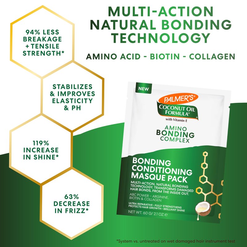 - Palmer's Hair Bonding Solutions: Palmer's Amino Bonding Complex Collection uses natural ingredients to nourish, restore & rebuild damaged hair bonds. Healing Oil for nourishment, Leave-In Treatment for protection, Hair Gloss for brilliant shine & Conditioning Masque for intense hydration