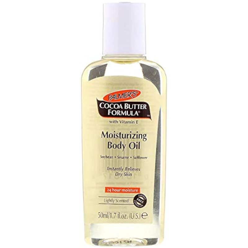 Palmerupperstrs Cocoa Butter Formula Moisturizing Body Oilcomma enriched with Vitamin Ecomma is a fast absorbingcomma lightly scented body oil that helps moisturize and soothe roughcomma dry skin without greasiness. May be applied after shower or bath or poured directly into the bath. Features a flip top cap for easy application.