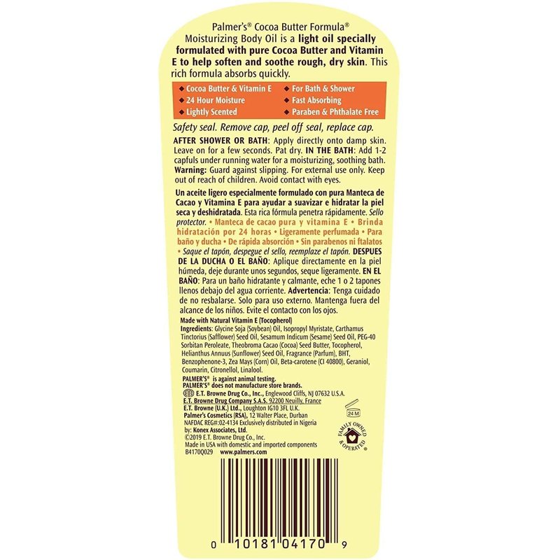 Immerse your skin in a symphony of deep hydration with Palmer's Cocoa Butter Body Oil. Enriched with the goodness of pure cocoa butter and vitamin E. This lightweight, fast-absorbing oil deeply nourishes and replenishes your skin, without any greasy residue.