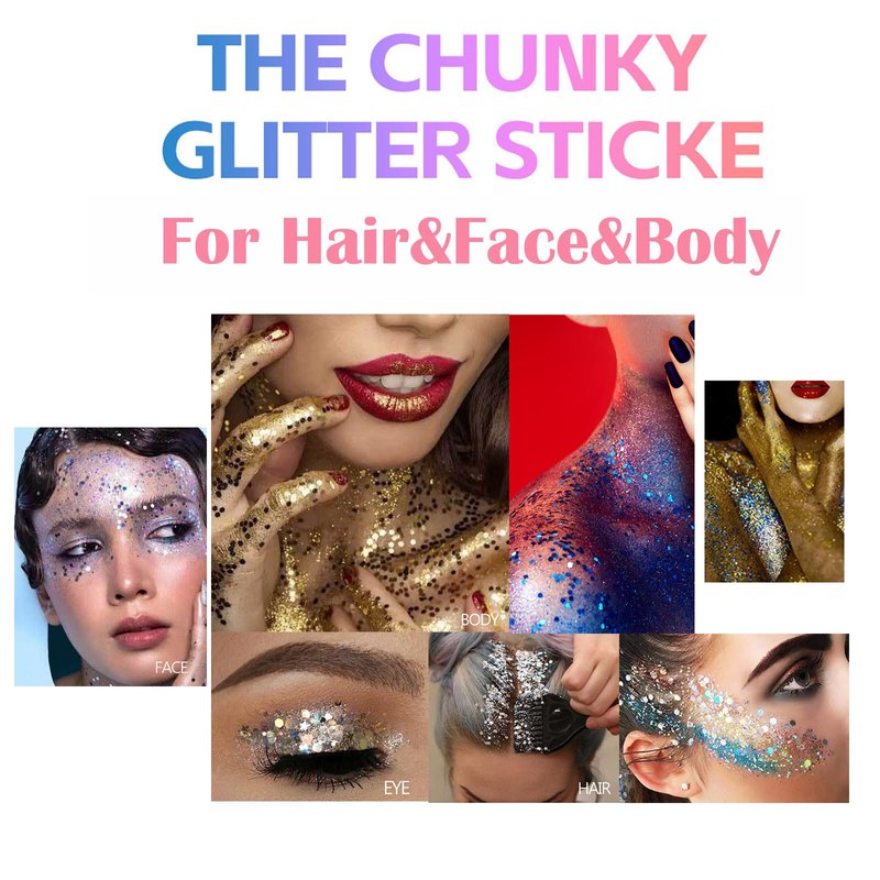 - WIDE USE:Unleash your creativity with this versatile glitter stick, perfect for use on the face,eyes,body, hair, hands, and more. Whether you're highlighting your cheekbones, adding shimmer to your hair, or creating a sparkling design on your arms, this glitter stick is your go-to for any look