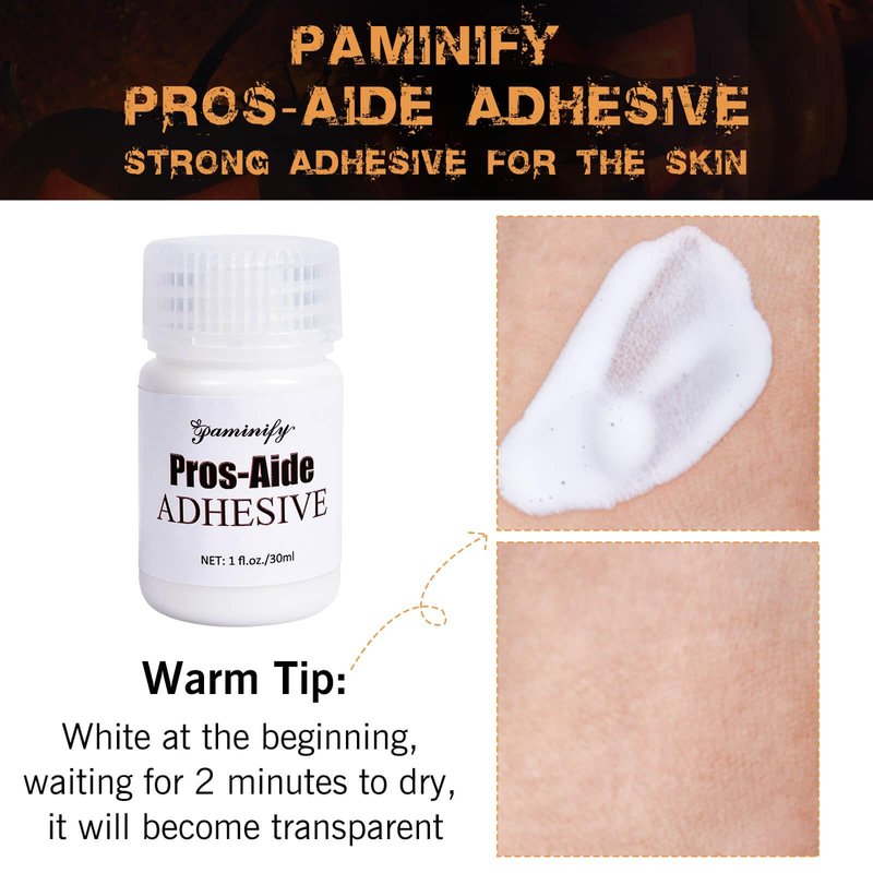 - MULTI-USE GLUE:Makeup Kit included pros-aide adhesive(bald cap glue) is versatile, perfect for not only securing the bald cap but also adhering prosthetics, fake beards, crepe hair, wigs, and prosthetic noses. Ideal for costumes like wicked witch,Lord Voldemort,Uncle Fester,and joker.Unleash your creativity and imagination