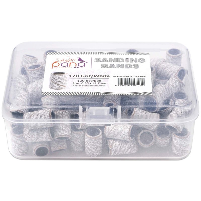 - [Design] These 120 grit Zebra sanding bands are a great fit for the average nail drill machine and have a reliable and stable coarse surface that will quickly smooth and contour any rough edges. Perfectly designed to securely attach to drill bits, these items are easy to remove and attach. These sanding bands also come in a handy small opaque plastic storage case that can be easily reused or repurposed.