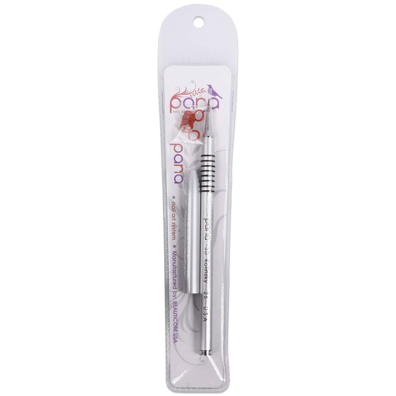 - PANA 3D Nail art brush with a brush size #2 has a 100% Kolinsky hair bristle that will ensure that the brush itself will not fray or shed on its own. It also has a high graded silver metal handle with a cap for keeping the brush clean when not in used, it also includes interchangeable rubber rings that easily slides onto the handle for a non-slip grip handle.