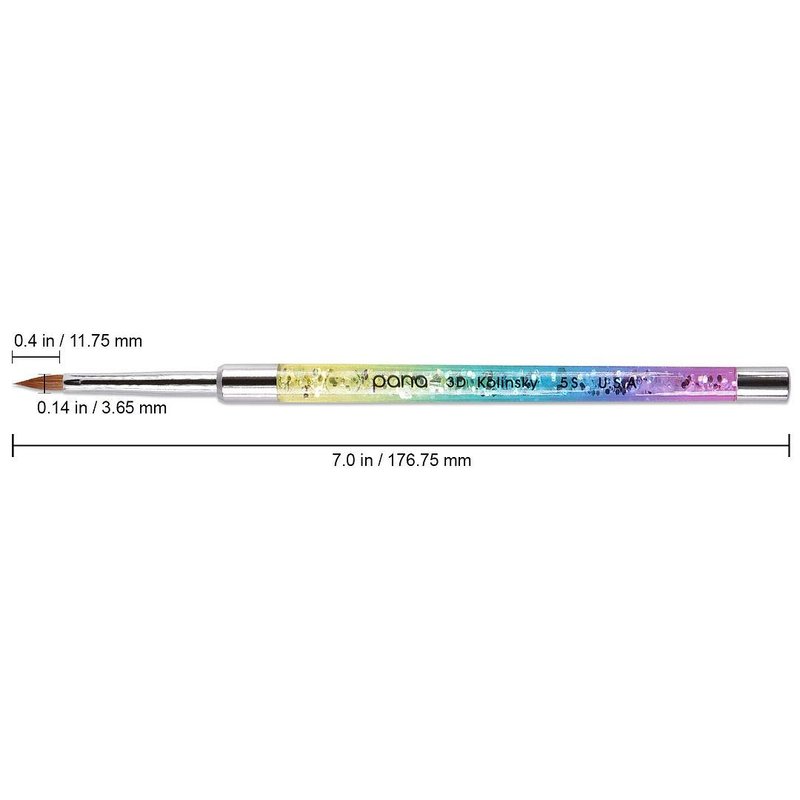 PANA 3D Kolinsky Nail Art Brush - Rainbow Glitter Handle, Size 5 - Acrylic Nail Art Sculpture Brush for Manicures Pedicure Salon Professional or Beginner