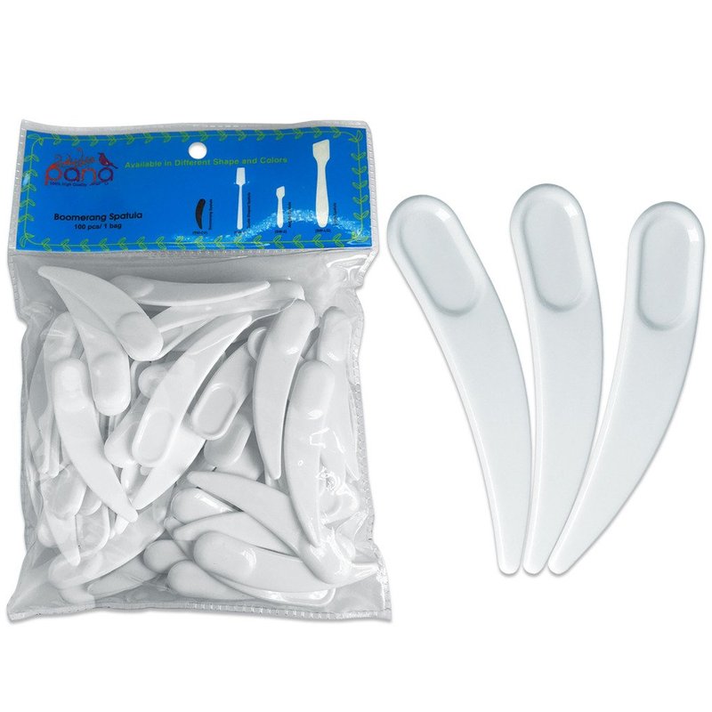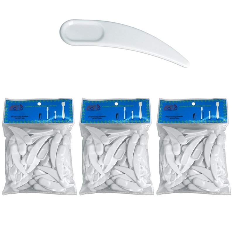 - Curved Boomerang Disposable Plastic Spatulas | Color: White | Quantity: 3 Packs (300 Pieces)
