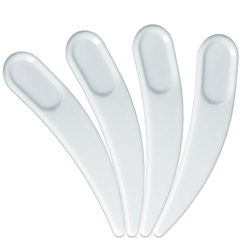 Keep make-up and face care containers and products clean with the boomerang shaped disposable spatula during every use. Scoop, spread, or mix personal care products without having to touch the actual product to maintain cleanliness. The curved handle of the disposable spatula makes it easy to apply and spread product on the skin as well as reaching the corners of a nearly empty container. Made with the highest quality of PP Plastic, the boomerang shaped disposable spatula is a small, light, and compact size for easy travelling and perfect giving out with sample products. Each pack comes with 100 spatulas.