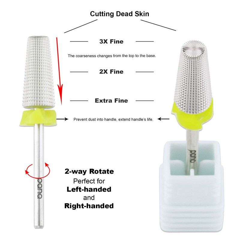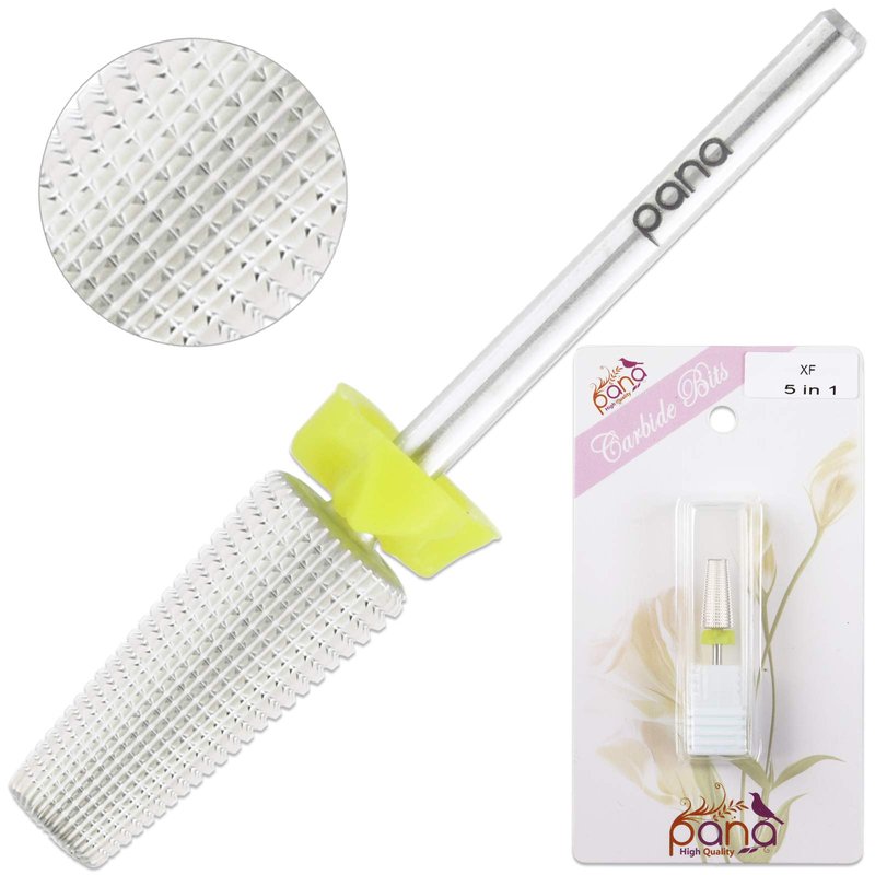 PANA Nail Carbide 5 in 1 Bit - Two Way Rotate use for Both Left and Right Handed - Fast remove Acrylic or Hard Gel - 3/32" Shank - Manicure, Nail Art, Drill Machine (Extra Fine - XF, Silver)