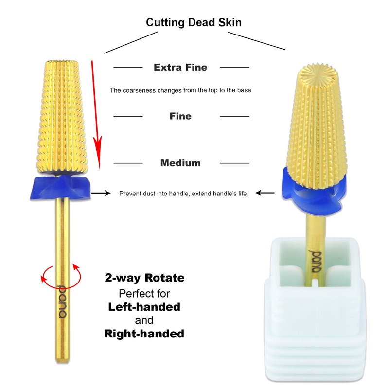 PANA Nail Carbide 5 in 1 Bit - Two Way Rotate use for Both Left and Right Handed - Fast Remove Acrylic or Hard Gel - 3/32" Shank - Manicure, Nail Art, Drill Machine (Medium - M, Gold)