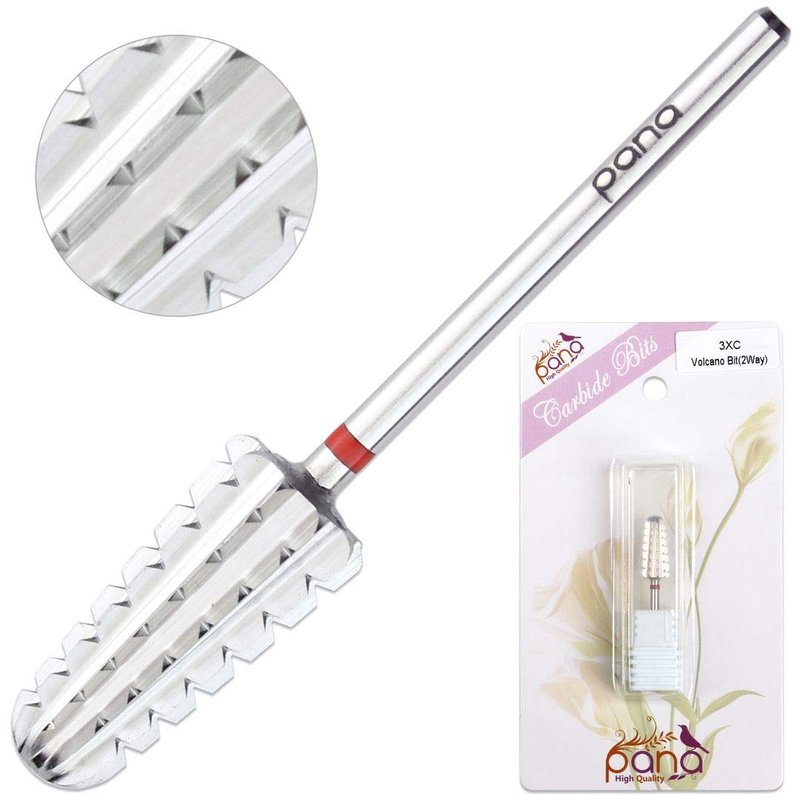 - PANA 3/32” Shank 2-way Volcano Carbide Bit is made of a tungsten steel material. This material is one of the hardest metal, making them suitable for a variety of manicure purposes. They are built to last and are sturdy and durable and with a powerful cutting ability it makes your manicure easier and saves your valuable time.