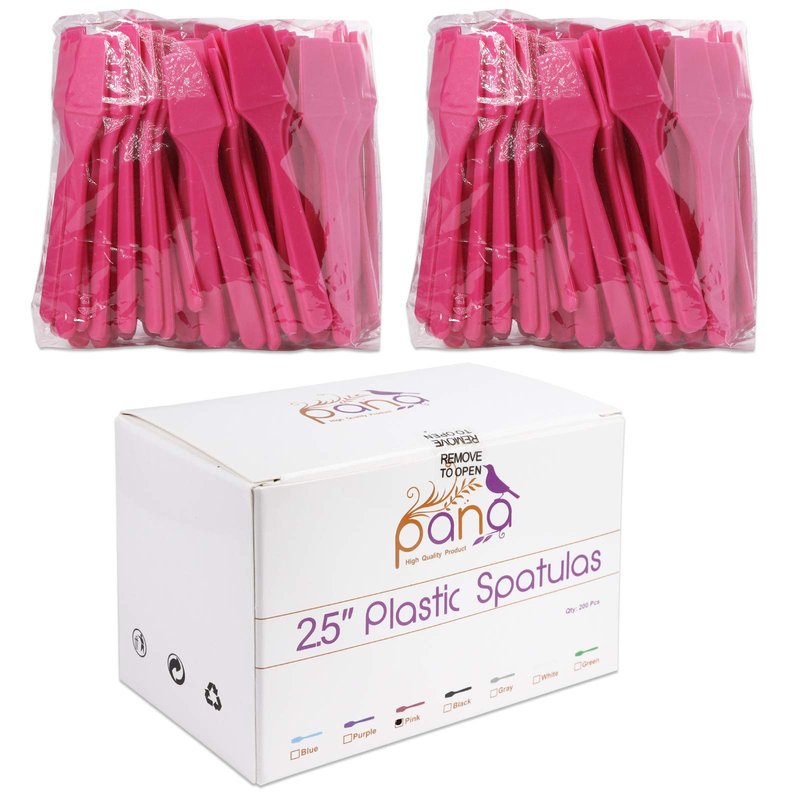 Pana Small 2.5" Spade Shaped Disposable Plastic Cosmetic Spatula for Mixing and Sampling Makeup, Skincare, Creams, Lotions, and Masks (Pink, 200pcs)