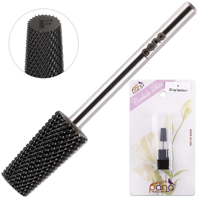 PANA USA 3/32" Tapered Barrel Carbide Nail Bit - For Electric Dremel Drill Machine, Nail Art Design, Manicure, Pedicure, Nail File, Cuticle Clean (Fine Grit, DLC Black)