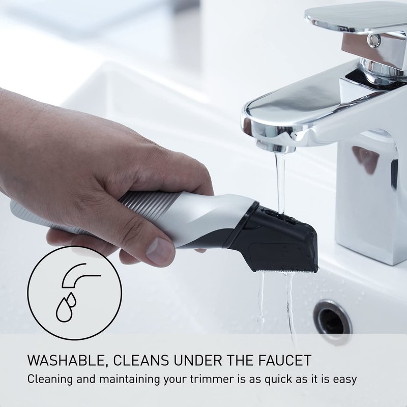 - 3 Attachments to Trim All Over: Specially designed attachments adjust trimming lengths for safe, precision grooming of different body areas, even the groin