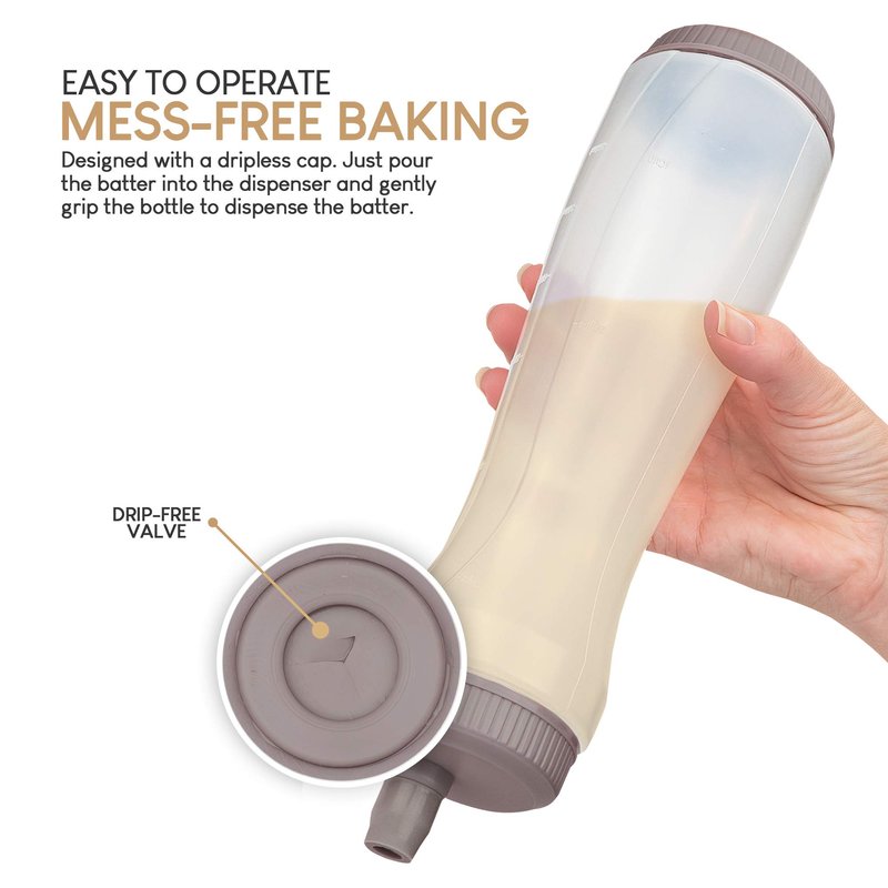 - Easy to operate; You just need to pour the batter into the dispenser and gently grip the bottle to dispense the batter; Invert and squeeze to pour your waffle, pancakes, crepes, and cupcake batters; Keeping your worktable clean