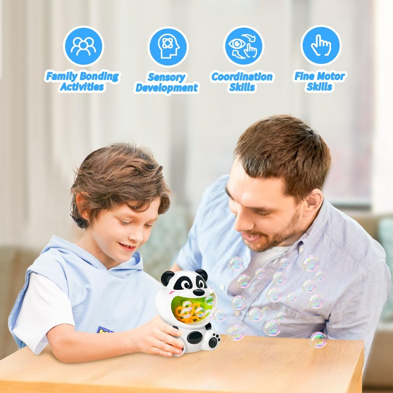 - 【Educational & Stimulating】Beyond fun, our Panda Bubble Machine also promotes sensory development, motor skills, and cognitive learning through visual tracking of bubbles and physical interaction. Watching the bubbles rise and burst can improve children's visual tracking ability and focus, while attempting to catch the bubbles helps develop their hand-eye coordination and reaction skills, allowing kids to grow while having fun.