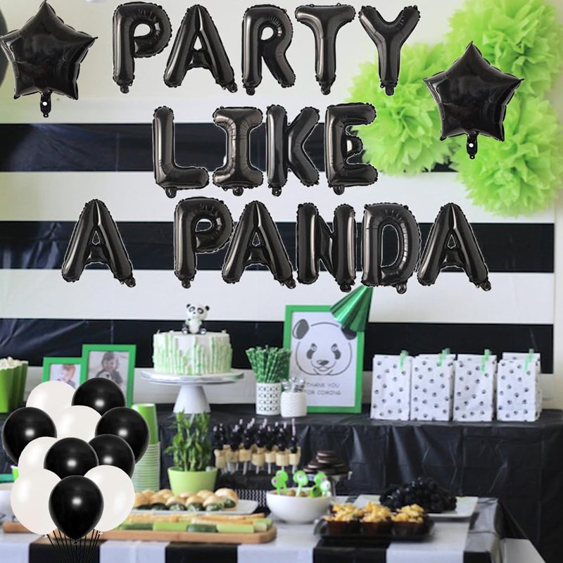 Panda Party Decorations Black Party Like A Panda Balloons for Panda Bear Party Supplies Like a Panda/Jungle Safari Animals Themed Happy Birthday Baby Shower Party Supplies Decorations