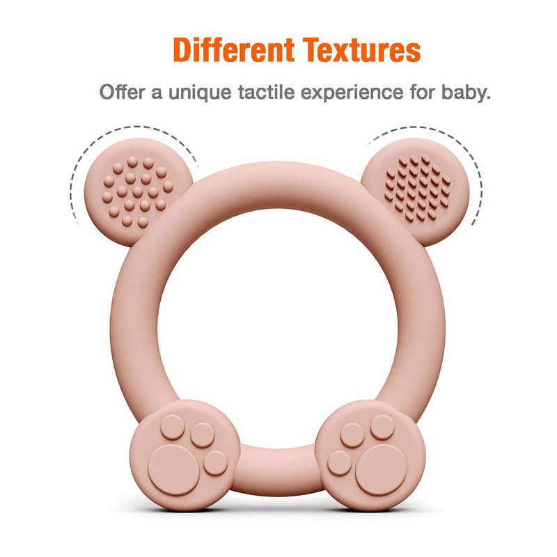 PandaEar Silicone Baby Teething Ring for Infants Newborn, Baby Teething Toys, BPA Free Soft and Textured Bear Ring