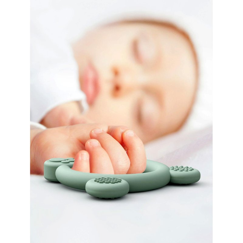 - 【Easy to Hold】: The silicone teether is very easy for little fingers to get a strong grip, with a unique design that aids in tongue exploration and speech development