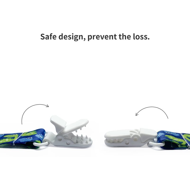- UNIVERSAL CLIP-The strap is a universal pacifier leash designed with a loop to be compatible with all types of pacifiers. It can hold soother, burp cloths, teething rings, baby blankets, and drool bibs.