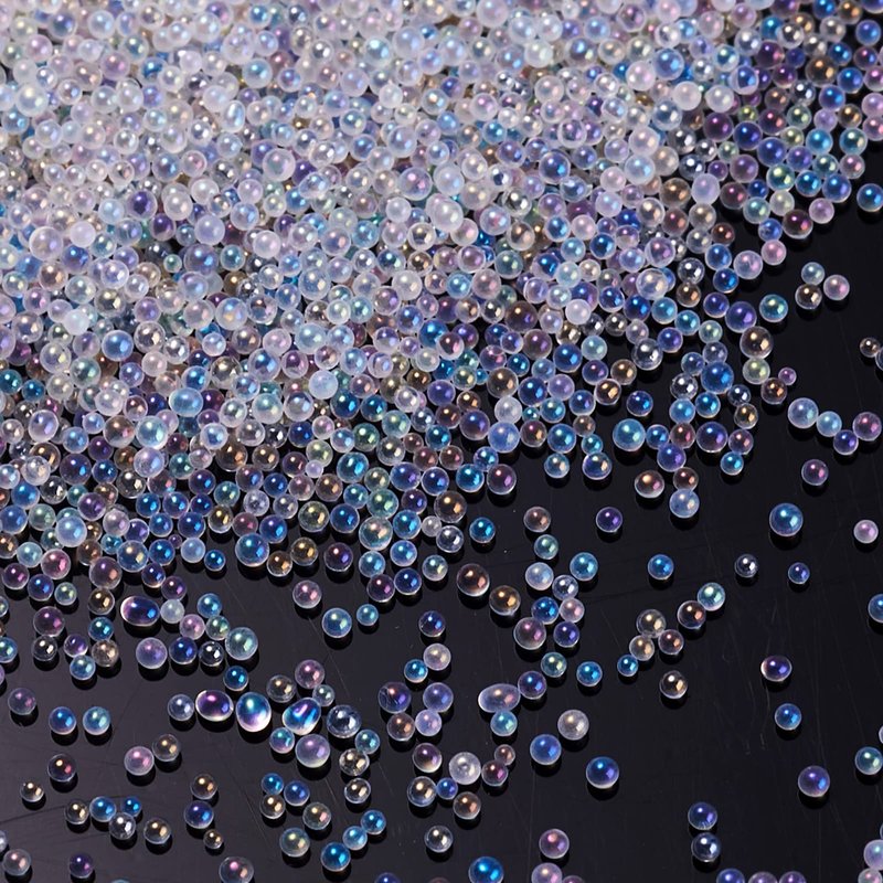 Transparent Glass Caviar Nail Beads, Micro Beads, For Nail Care, Dyed, No Hole, AB Color, Clear