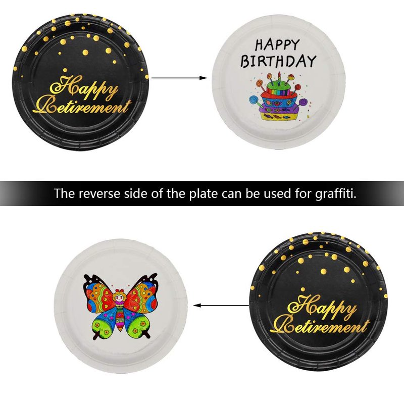 - Durable Happy Retirement Party Supplies : Made of high quality and thick paper, heavy board stock in a quality matte finish, our fancy paper plates won't folded, teared or broken when holding food.