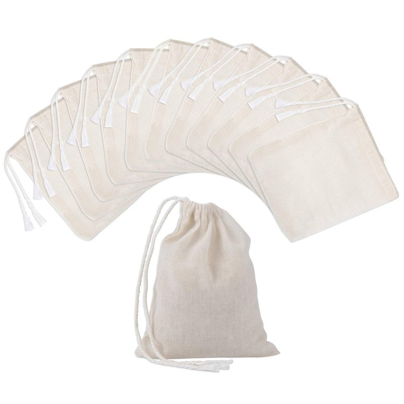 Pangda 100 Pieces Drawstring Cotton Bags Muslin Bags for Storage, Teas, Spices, Soaps, Candy, Jewellery, Wedding Party Favors and DIY Craft Home Decor (4 x 3 Inches)