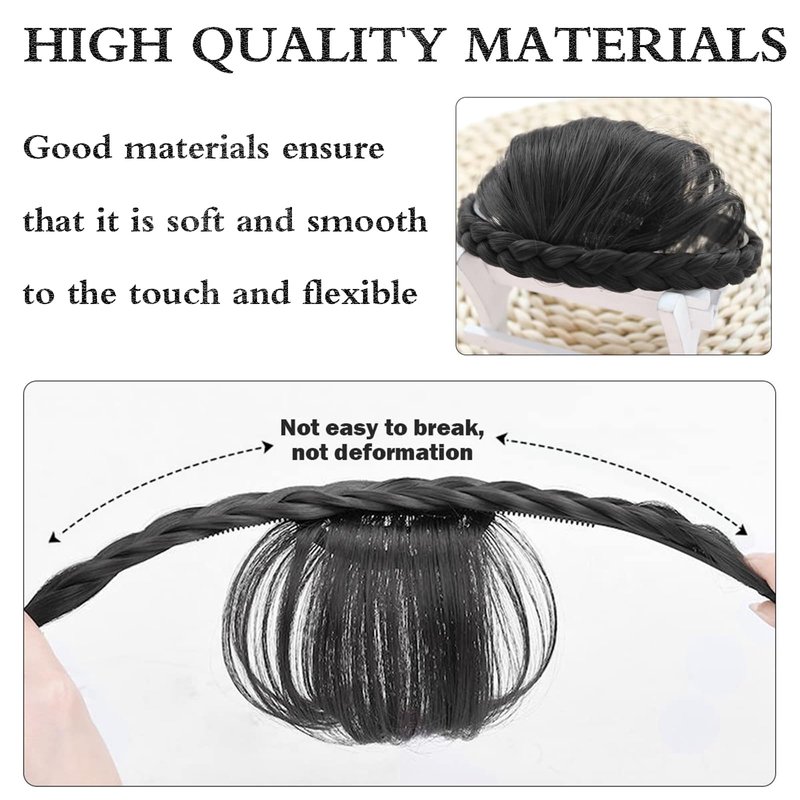 - Easy To Use--Integrated hairpin design makes it easier to wear.One pieces hair extension with braided headband, which is for long times wear. After wearing it, hiding the of the bangs in your hair will have a more realistic effect.