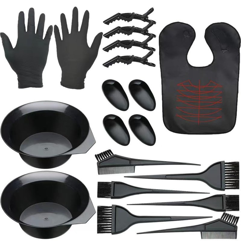 - 【Great black color】 Get professional results at home with this 19-piece hair color bowl and brush set, complete with 2 large hair dye bowl, 6 hair color brush, 4 large crocodile hair clips, and more.