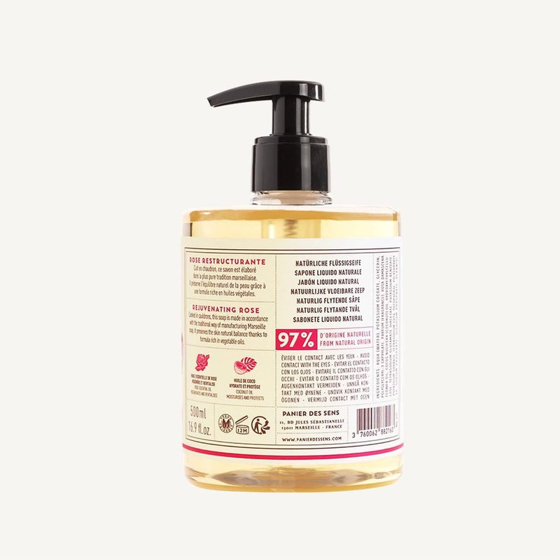 Panier des Sens - Liquid Hand Soap - Rose Hand Wash - French Marseille Moisturizing Hand Soap with Coconut Oil - Refillable Kitchen & Bathroom Hand Soap - 97% Natural Ingredients -16.9 Fl.oz