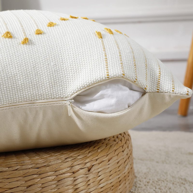 - 💎EASE CARE--For the woven tufted pillow covers, we recommend hand washing separately. To prolong the life of the tassels and tufting, turn the pillowcase inside out and then hand wash it. The first cleaning may have some floating fiber, which is normal.