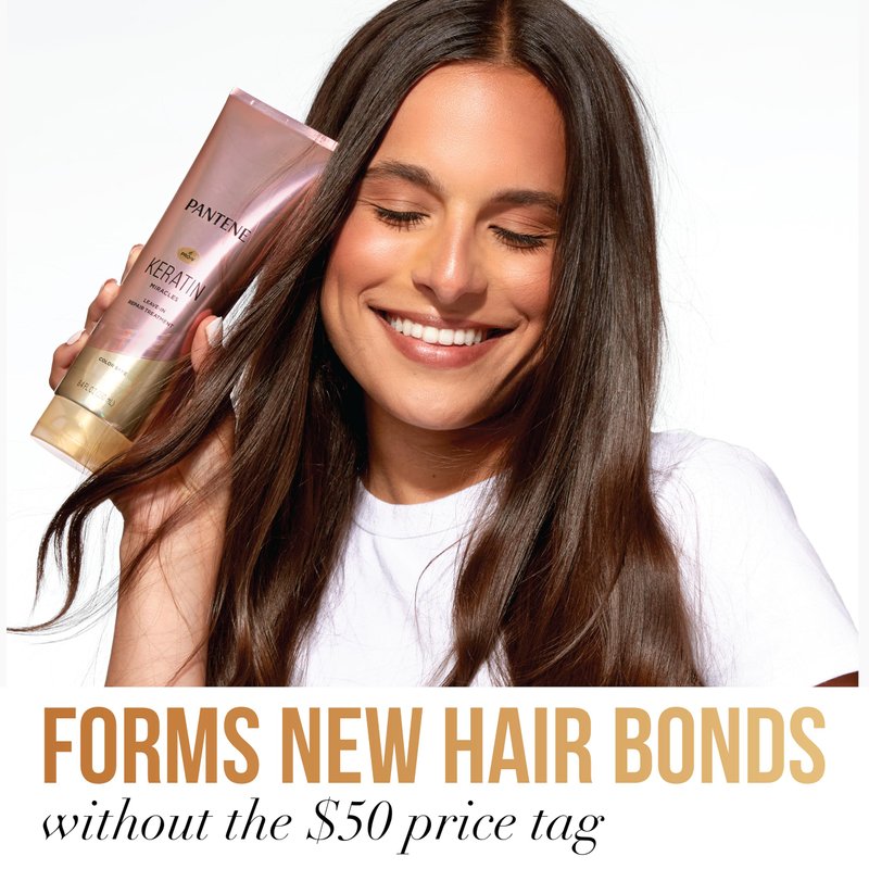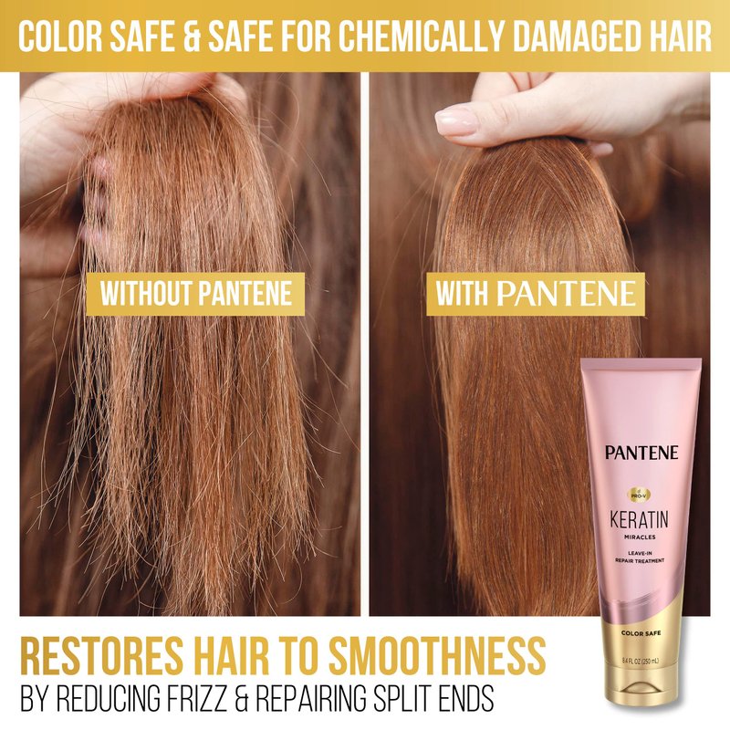 Pantene Keratin Leave-In Conditioner, Protein Treatment, with Argan Oil, Repairs Split Ends, Protects Hair from Damage, for Dry Damaged Hair, Safe for Color Treated Hair, Formaldehyde Free, 8.4oz