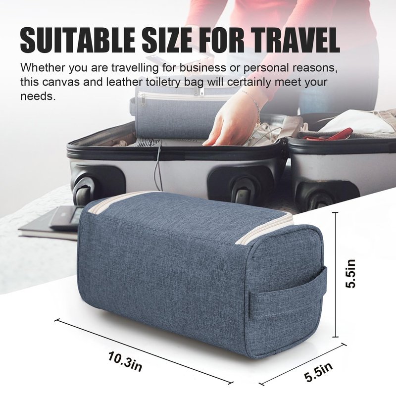 - WIDE OPEN DESIGN WITH ORGANIZED COMPARTMENTS: Compact yet spacious, this travel bag provides adequate room for all your essentials. The bag as a whole measures 9.25 L x 4.72 W x 4.72 H in Inches / 23.5 L x 12 W x 12 H in centimeters, with a volume of 3.3 L. It features a main compartment that holds larger items such as shampoo bottles or shaving cream, a zippered mesh pouch that keeps your smaller toiletries and cosmetics in place, and a front zipper pocket that provides extra storage with easy