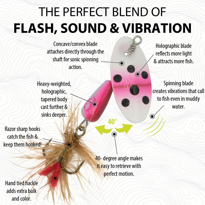 - 🎣 ✅ PANTHER MARTIN: Unique shaft through blade design creates easiest and fastest spinning action in the world