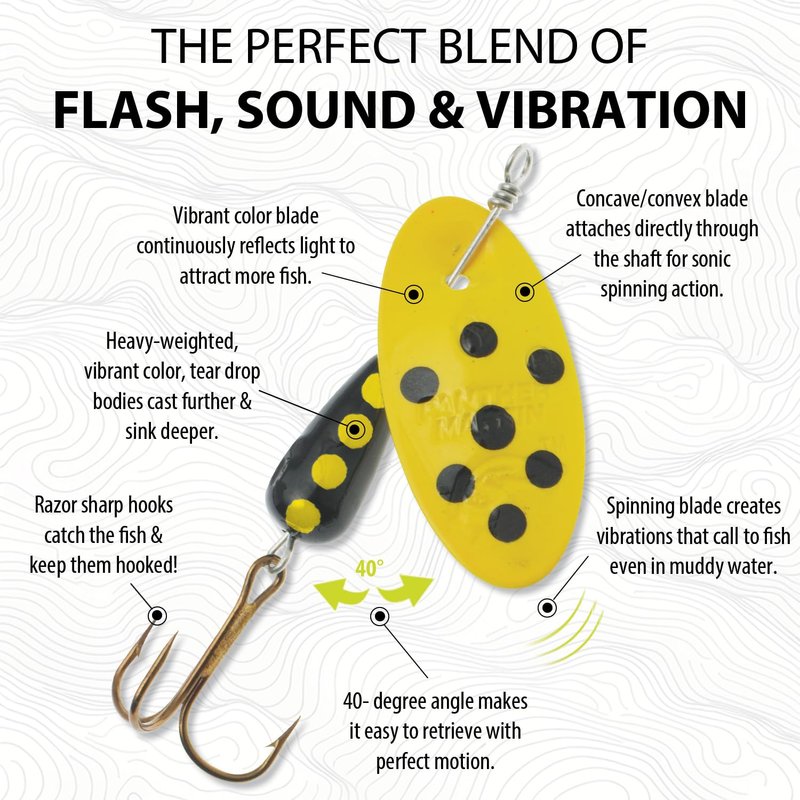 - 🐟 ✅ PANTHER MARTIN: ✅ Unique shaft through blade design creates easiest and fastest spinning action in the world.